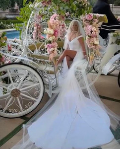 La casa della coppia, che per l'occasione era drappeggiata di rosa e rose, c'era un cavallo bianco con zoccoli dorati che trainava una carrozza degna della Principessa del Pop. La cerimonia di dieci minuti si è svolta sotto una tenda drappeggiata di velluto rosso. Gli ospiti includevano Madonna, Selena Gomez, Drew Barrymore, Paris Hilton e Carter Reum, Kathy Hilton, Maria Menounos, Ansel Elgort, Will.i.am, Donatella Versace, J Balvin, Willie Gomez, Alex Del Piero e l'avvocato Rosengart.