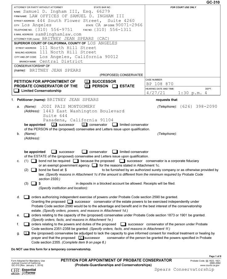 FREEBRITNEY: Britney chiede che Jodi Montgomery sia la tutrice della sua persona